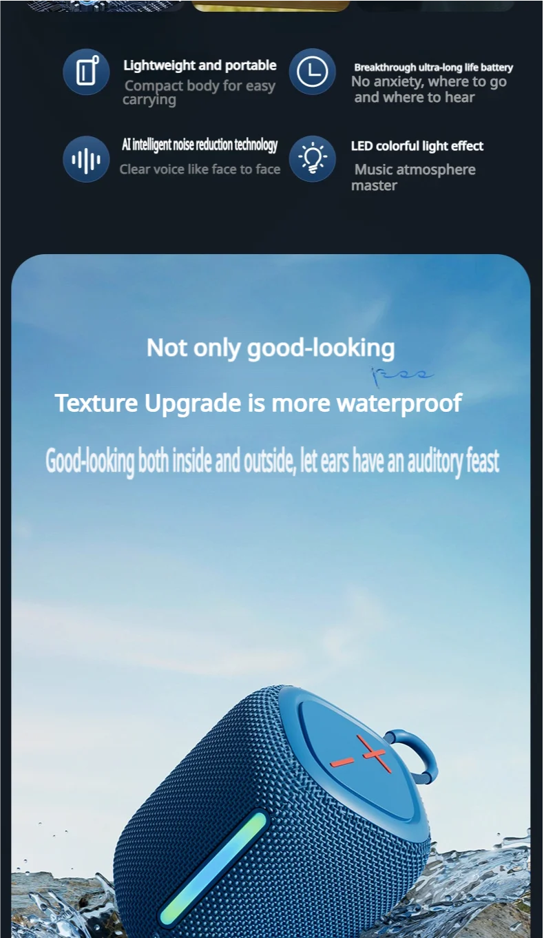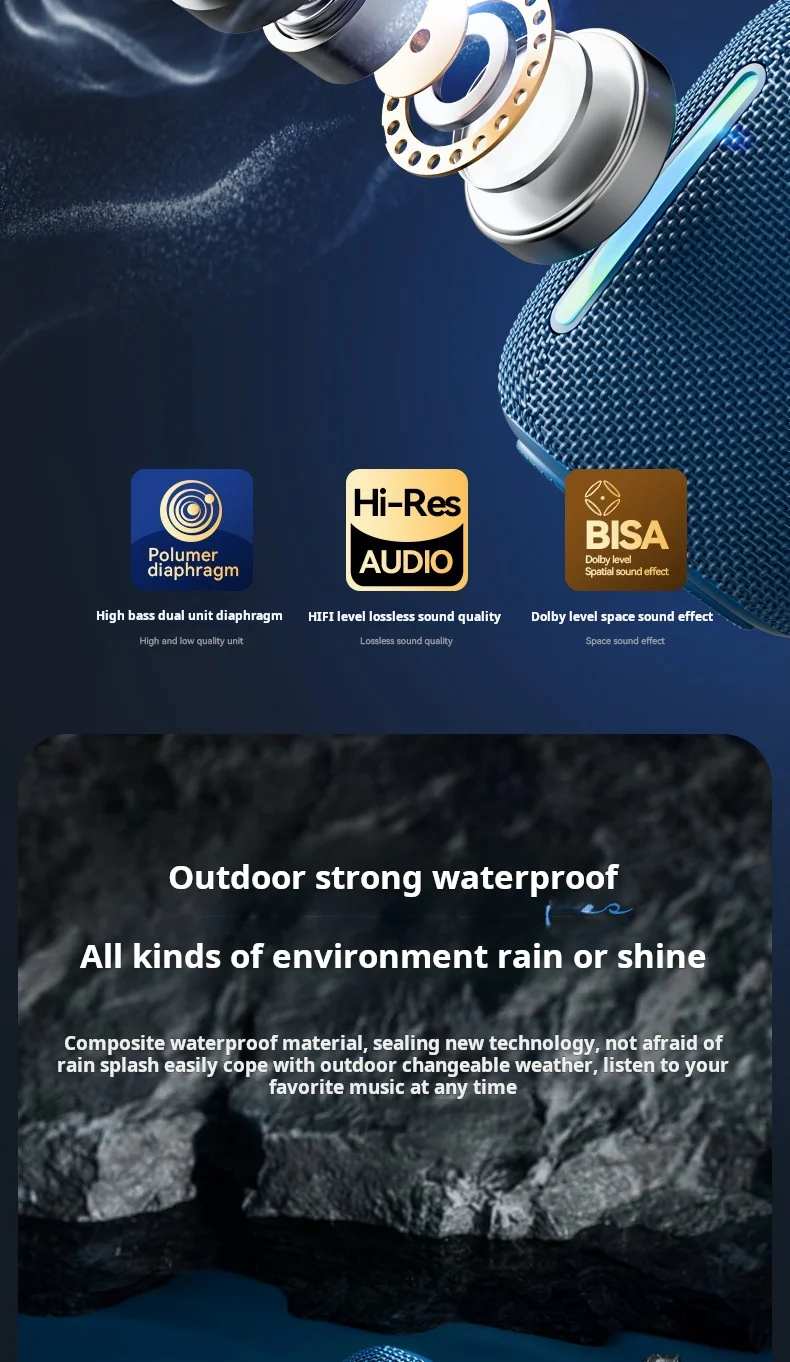 Newly BT Speaker for Outdoor IPX7 Waterproof Wireless Speaker with TWS