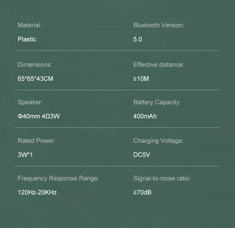 | Speaker Size | 65*65*43mm |