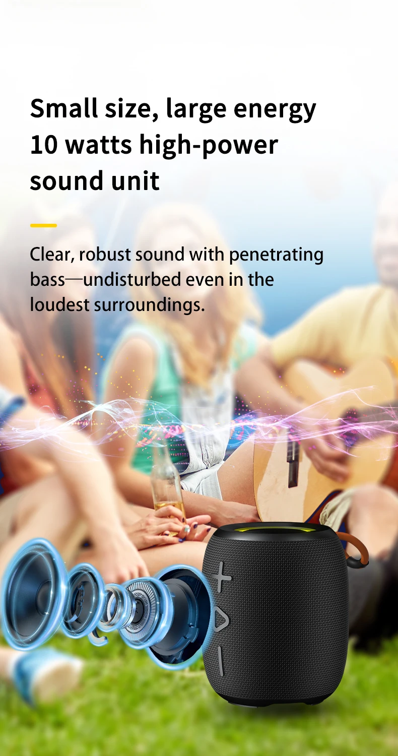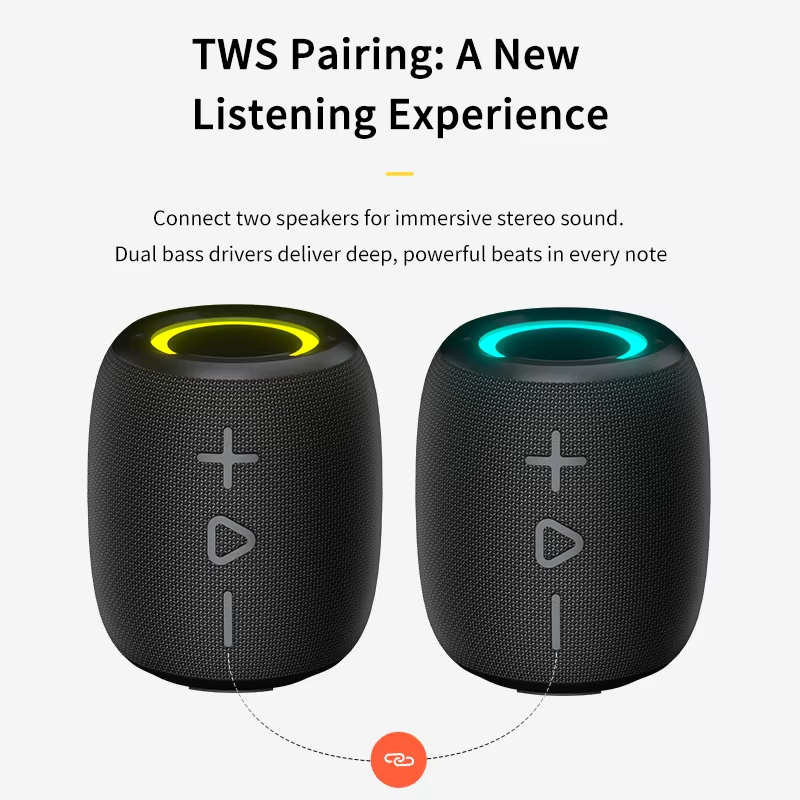 New Portable Waterproof Outdoor Bluetooth Speaker With Colorful RGB Light 10W TWS Dual Bass Speaker