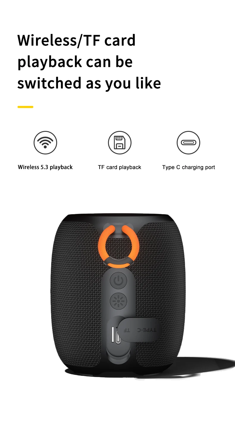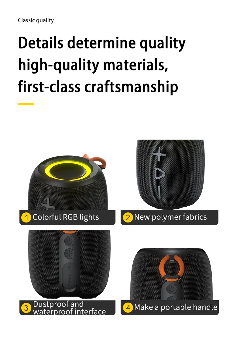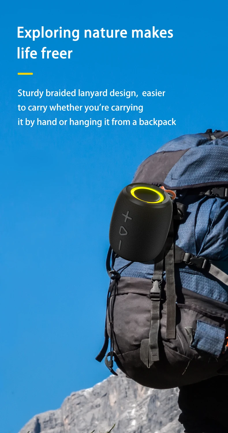 TWS New Portable Waterproof Outdoor Bluetooth Speaker With Colorful RGB Ligh